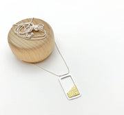 The way we can make these pieces affordable but still substantial is to use voids.  This long rectangular necklace is the perfect example.  A strong sterling silver frame surrounds a gold vermeil angled bottom with the added decoration of fine incised lines.