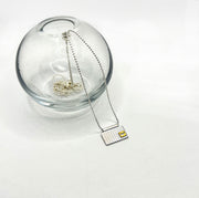 Similar to our Square Grid Pendant this rectangular version is just slightly larger. Carefully incised fine lines form a grid pattern across the front of the solid 925 sterling silver rectangle with a feature gold heart in the corner.
